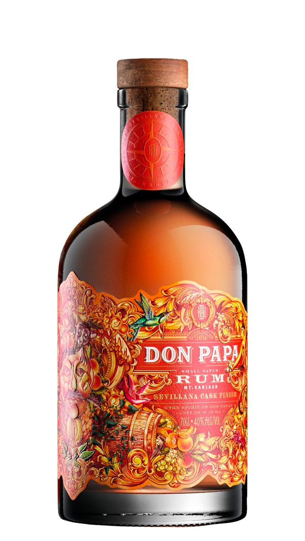 Rhum vieux – Small Batch – Double finition en fûts de vin d’orange de Séville et en fûts de Sherry Oloroso. Issu de la meilleure canne à sucre cultivée sur le riche sol de l’ile de Negros, Don Papa Sevillana est distillée à partir de mélasse. Il est en suite vieilli en fûts de chêne américain ayant contenu de bourbon. Le Don Papa Sevillana bénéficie ensuite de 36 mois de finition dans 2 types de fûts espagnols. Les fûts ayant contenu du Sherry Oloroso et plus original, les fûts ayants contenus du vin andalou de Naranja. Ce dernier contenant à l’origine du vin d’orange, une spécialité locale de Séville.