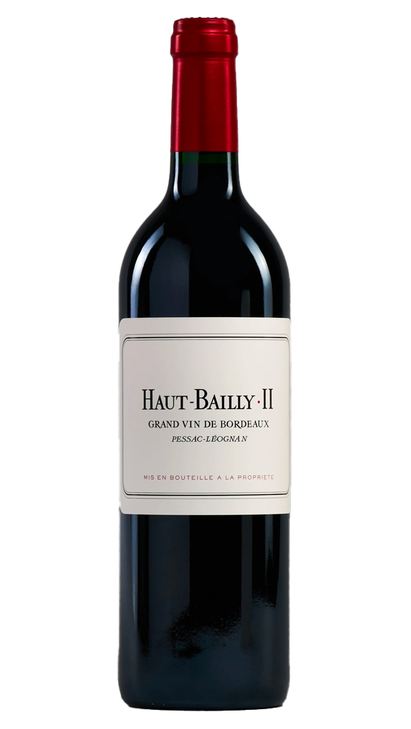 Véritable second vin, Haut-Bailly•II, anciennement nommé La Parde Haut-Bailly, est produit dès 1967 à partir des mêmes parcelles de vignes que son aîné. Expression différente du terroir, il est le fruit d’une sélection tout aussi méticuleuse et vinifié avec la même expertise. Il reflète tout le plaisir et la finesse caractéristiques de Haut-Bailly.