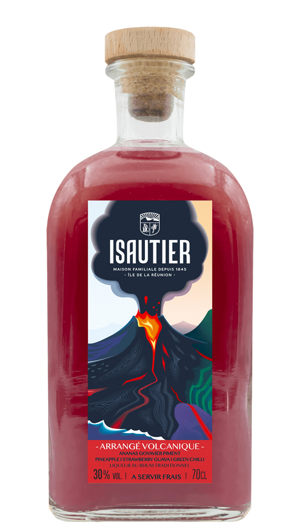 La Réunion, ses volcans, sa nature intense, ses sols incroyablement riches. Ici est née en 1845 la Maison Isautier, la référence des rhums de La Réunion. L’arrangé Volcanique comme les autres membres de la ‘Fresque de la Réunion ’ – Océanique, Intense et Tropical – rend hommage à ce terroir exceptionnel, invitation au voyage et à la gourmandise.